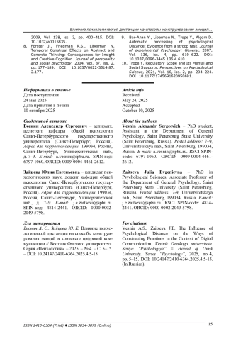6. Maglio S. J. An agenda for psychological distance apart from construal level // Social and Personality Psychology Compass. - 2020. - Vol. 14, Iss. 8. - P. 1-12. - 10.1111/ spc3.12552. DOI: 10.1111/spc3.12552 EDN: QAVSMC