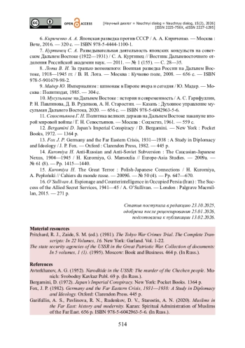 7. Куртинец С. А. Разведывательная деятельность японских консульств на советском Дальнем Востоке (1922--1931) / С. А. Куртинец // Вестник Дальневосточного отделения Российской академии наук. - 2011. - № 1 (155). - С. 28-35.