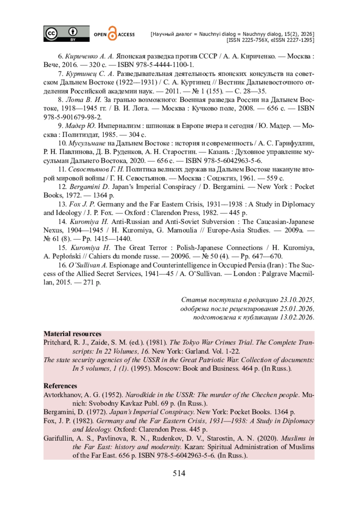 14. Kuromiya H. Anti-Russian and Anti-Soviet Subversion : The Caucasian-Japanese Nexus, 1904--1945 / H. Kuromiya, G. Mamoulia // Europe-Asia Studies. - 2009а. - № 61 (8). - Pp. 1415-1440.