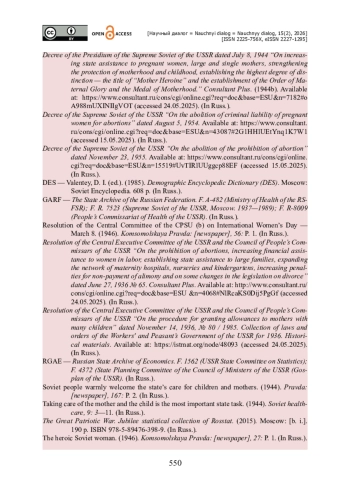 2. Араловец Н. А. Абортная политика в СССР [Электронный ресурс] / Н. А. Араловец, В. А. Исупов // Большая российская энциклопедия. - Режим доступа : https://bigenc.ru/c/abortnaia-politika-v-sssr-58642c (дата обращения 13.04.2025).