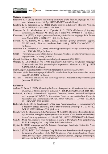1. Баркович А. А. Функциональность диады «коммуникационный - коммуникативный» : дискурсивный аспект / А. А. Баркович // Вестник Томского государственного университета. Филология. - 2015. - № 5 (37). - С. 37-52. - https://doi.org/10.17223/19986645/37/3.