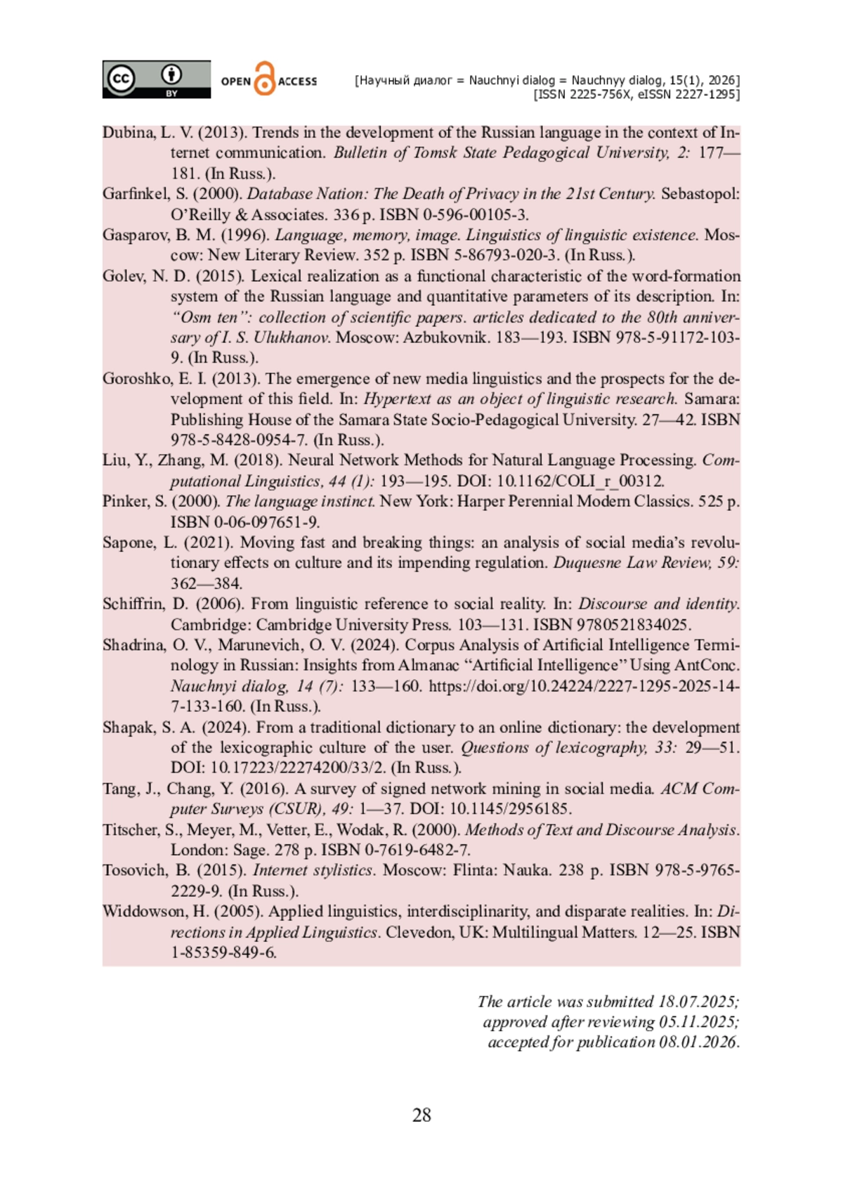 5. Горошко Е. И. Возникновение лингвистики новых медиа и перспективы развития этого направления / Е. И. Горошко // Гипертекст как объект лингвистического исследования. - Самара : Изд-во Самарского государственного социально-педагогического университета, 2013. - С. 27-42. - ISBN 978-5-8428-0954-7.