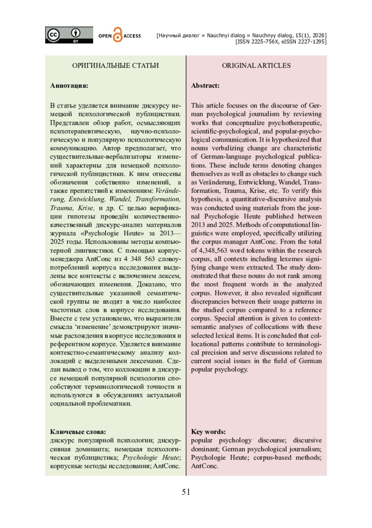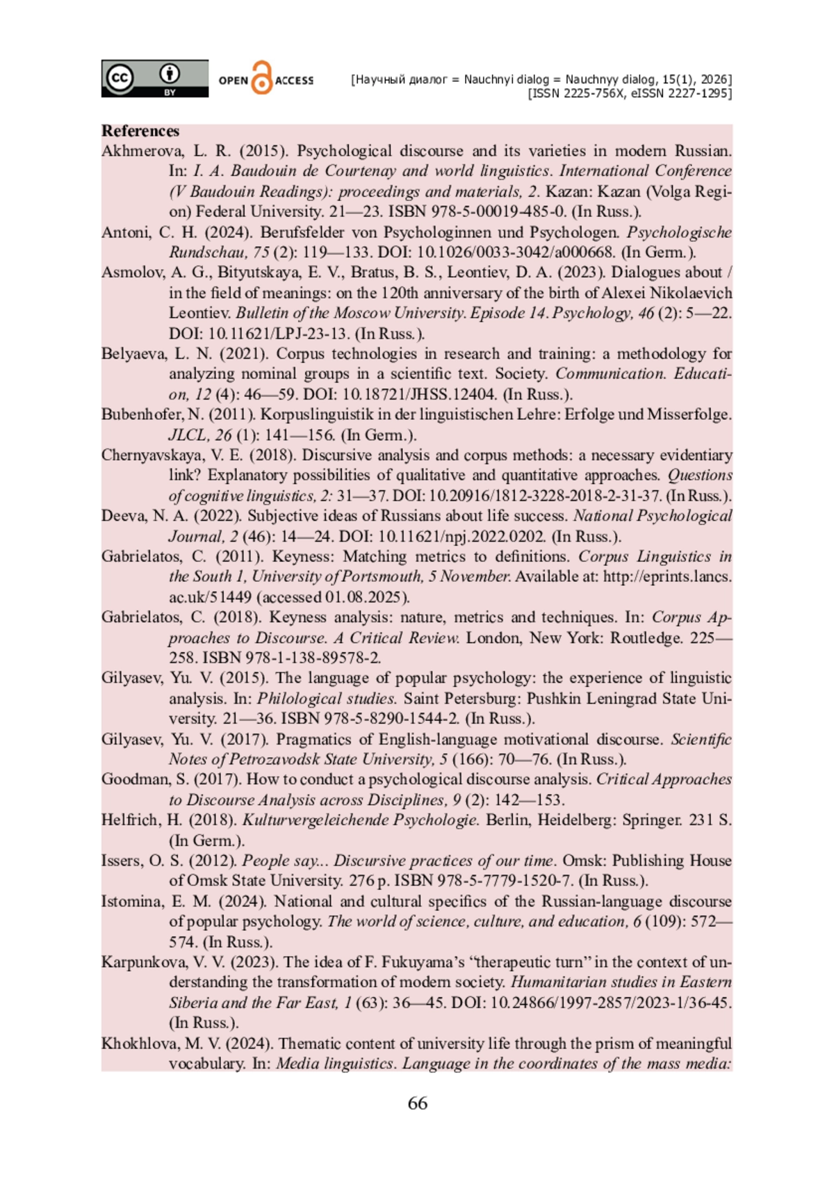 9. Истомина Е. М. Национально-культурная специфика русскоязычного дискурса популярной психологии / Е. М. Истомина // Мир науки, культуры, образования. - 2024. - № 6 (109). - С. 572-574.