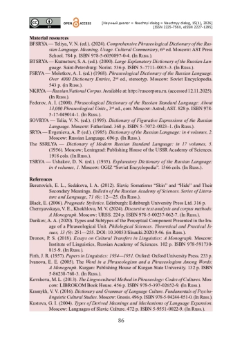1. Березович Е. Л. Славянские соматизмы «кожа» и «шкура» и их вторичные значения / Е. Л. Березович, И. А. Седакова // Известия РАН. Серия литературы и языка. - 2012. - Т. 71. - № 6. - С. 12--25.