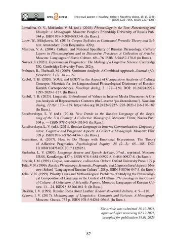 24. Scarantino A. How to Do Things with Emotional Expressions : The Theory of Affective Pragmatics / A. Scarantino // Psychological Inquiry. - 2017. - № 28 (2-3). - Pp. 65-185. - https://doi.org/10.1080/1047840X.2017.1328951.