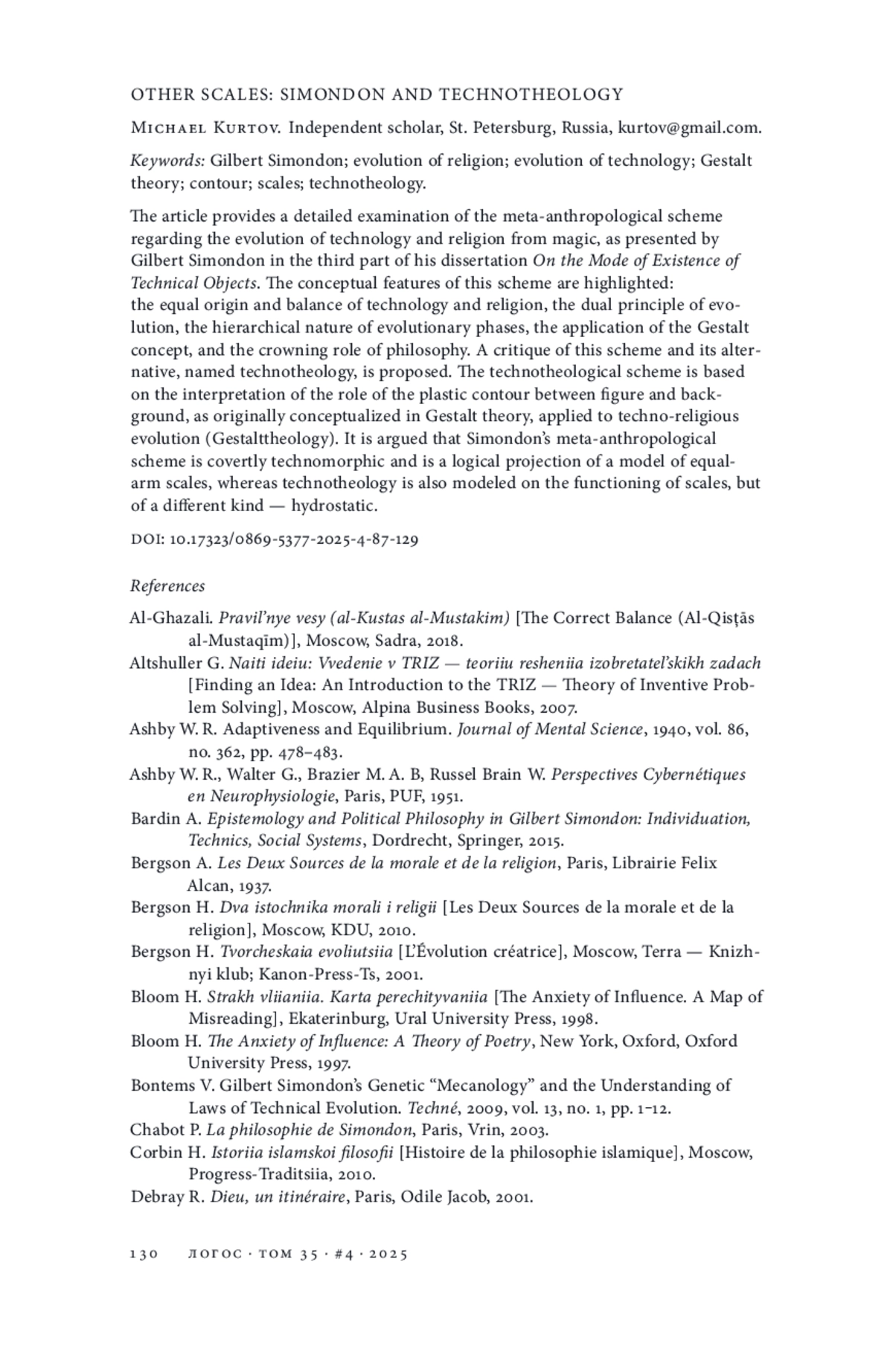 26. Bontems V. Gilbert Simondon’s Genetic “Mecanology” and the Understanding of Laws of Technical Evolution // Techné. 2009. Vol. 13. № 1. P. 1-12.