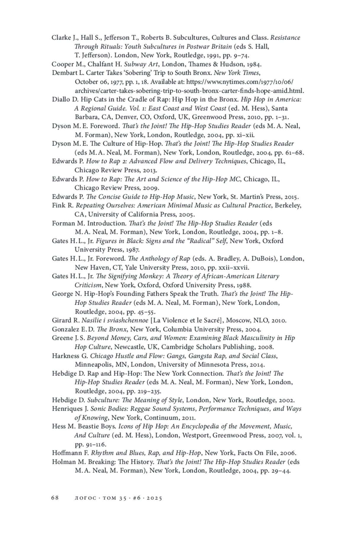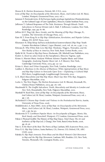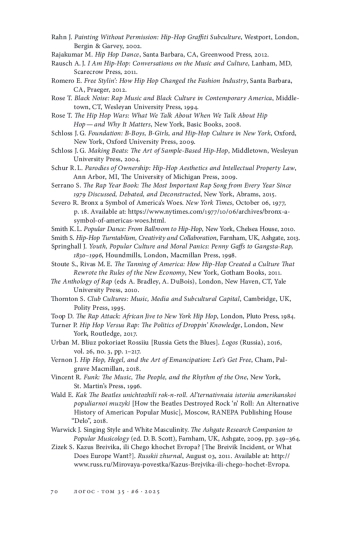 36. Hebdige D. Rap and Hip-Hop: The New York Connection // That’s the Joint! The Hip-Hop Studies Reader / M. A. Neal, M. Forman (eds). N.Y.; L.: Routledge, 2004. P. 219-235.