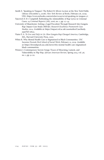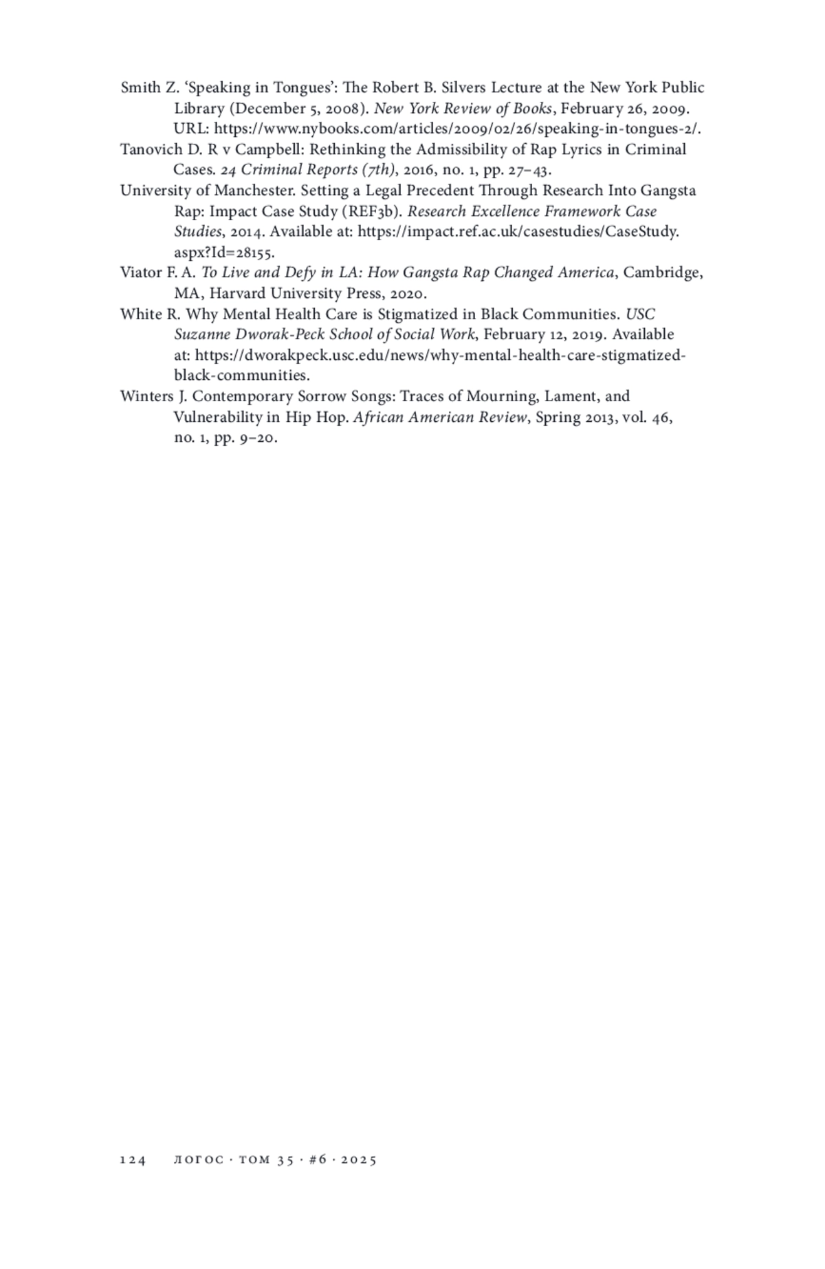 37. Tanovich D. R v Campbell: Rethinking the Admissibility of Rap Lyrics in Criminal Cases // 24 Criminal Reports (7th). 2016. № 1. P. 27-43.