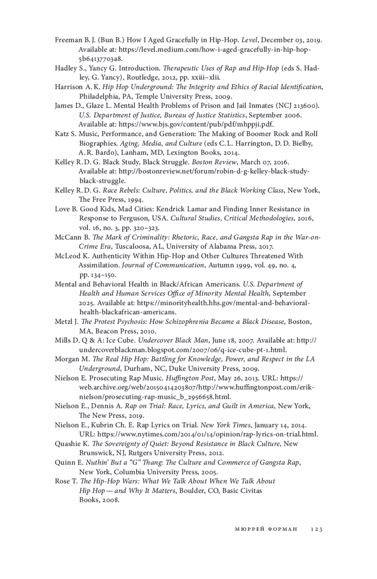 17. Hadley S., Yancy G.Introduction // Therapeutic Uses of Rap and Hip-Hop / S. Hadley, G. Yancy (eds). Routledge, 2012. P. xxiii-xlii.