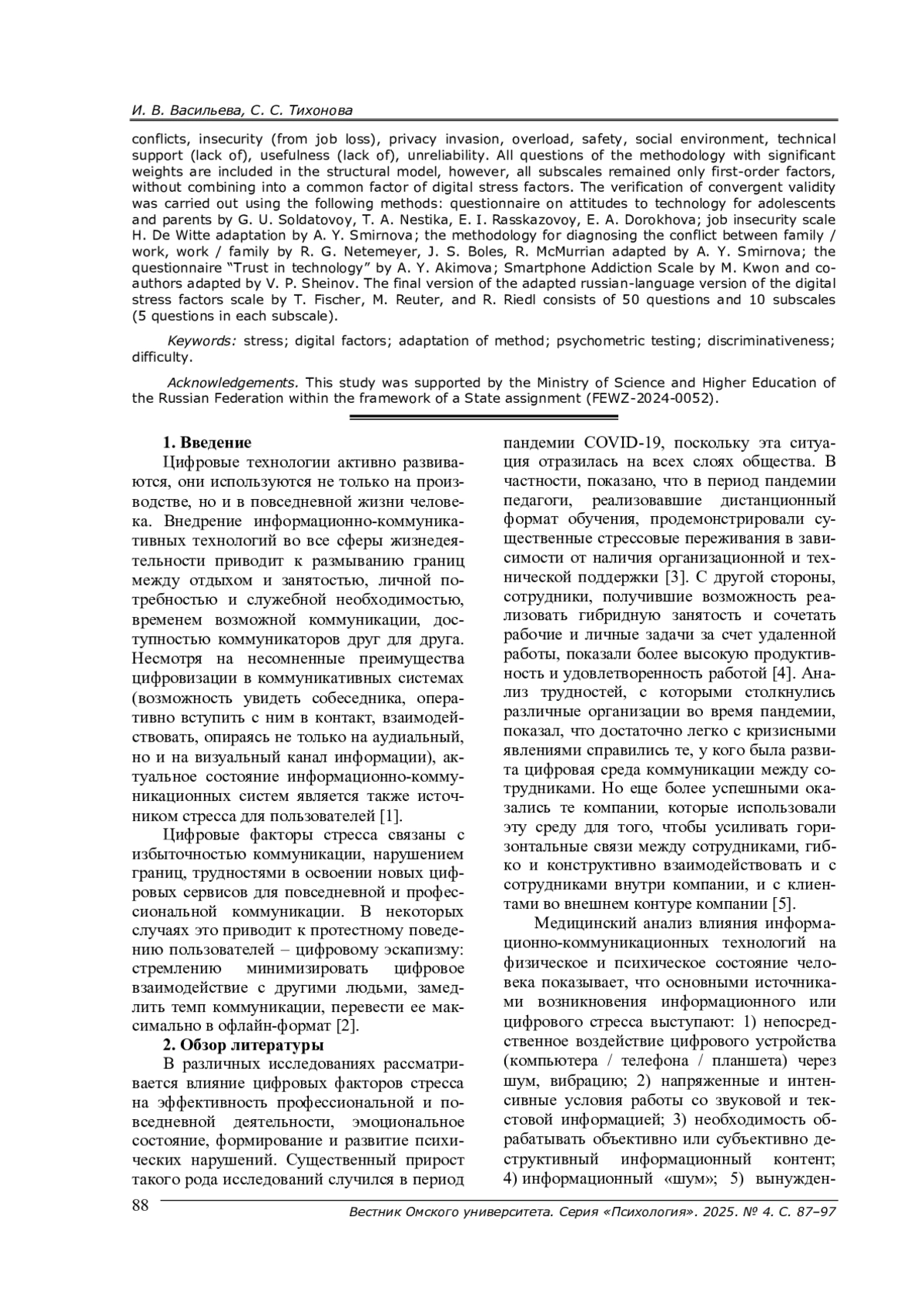 10. Fischer T., Reuter M., Riedl R. The Digital Stressors Scale: Development and Validation of a New Survey Instrument to Measure Digital Stress Perceptions in the Workplace Context // Front. Psychol. - 2021. - № 12. - P. 607598. -. DOI: 10.3389/fpsyg.2021.607598 EDN: SFVXBD