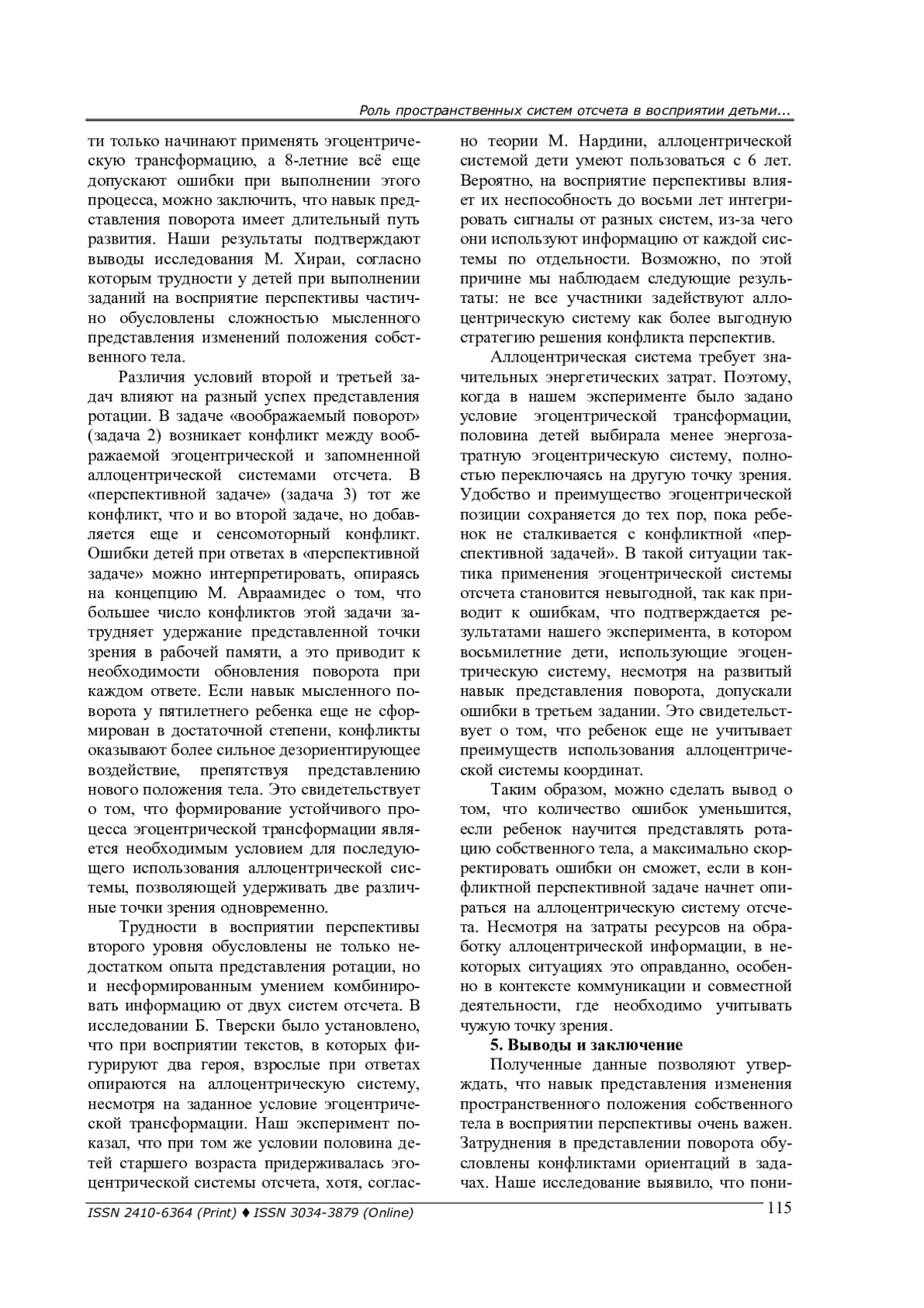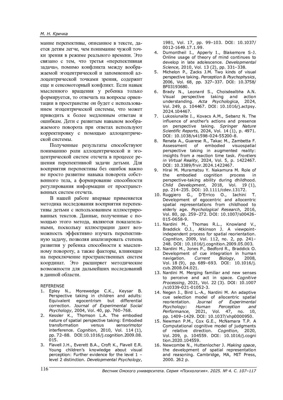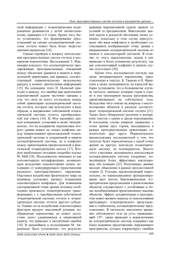 10. Ruggiero G., D’Errico O., Iachini T. Development of egocentric and allocentric spatial representations from childhood to elderly age. Psychological Research, 2016, Vol. 80, pp. 259-272. DOI: 10.1007/s00426-015-0658-9 EDN: ORHKTZ