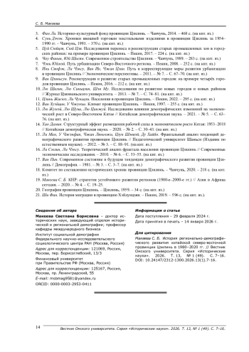 13. Лю Жумэй, Лю Шуна, Лю Цинжуй. Исследование влияния демографических изменений на экономический рост в Северо-Восточном Китае // Китайская демографическая наука. - 2021. - № 5. - С. 63-76. (на кит. яз.).