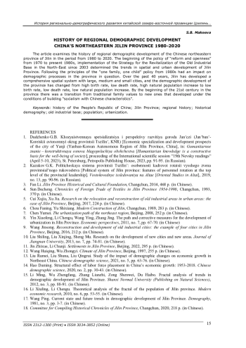 17. Ван Пин. Современное состояние и будущие тенденции демографического развития провинции Цзилинь // Демография. - 1981. - № 3. - С. 3-7. (на кит. яз.).