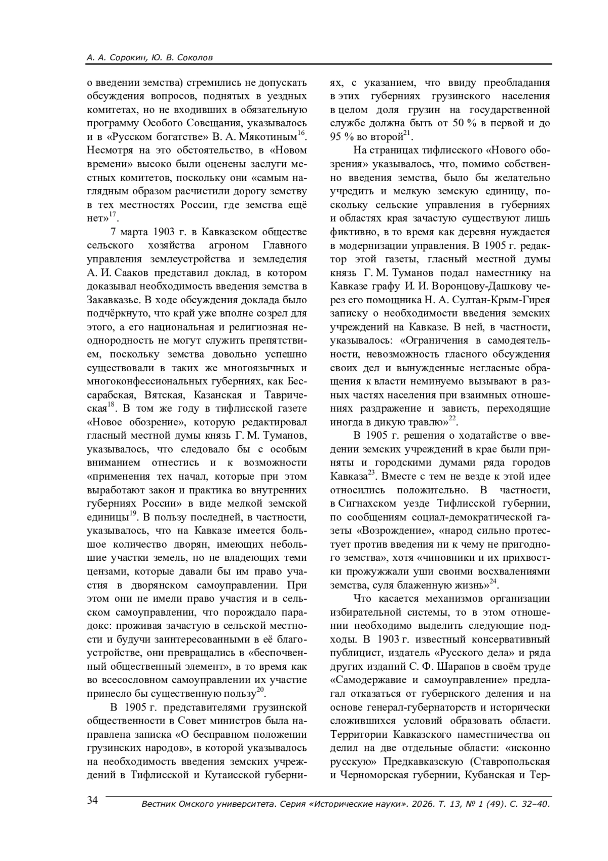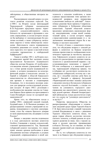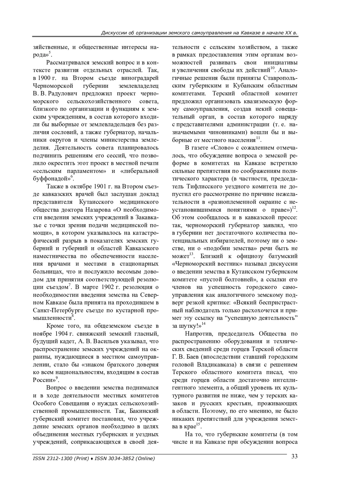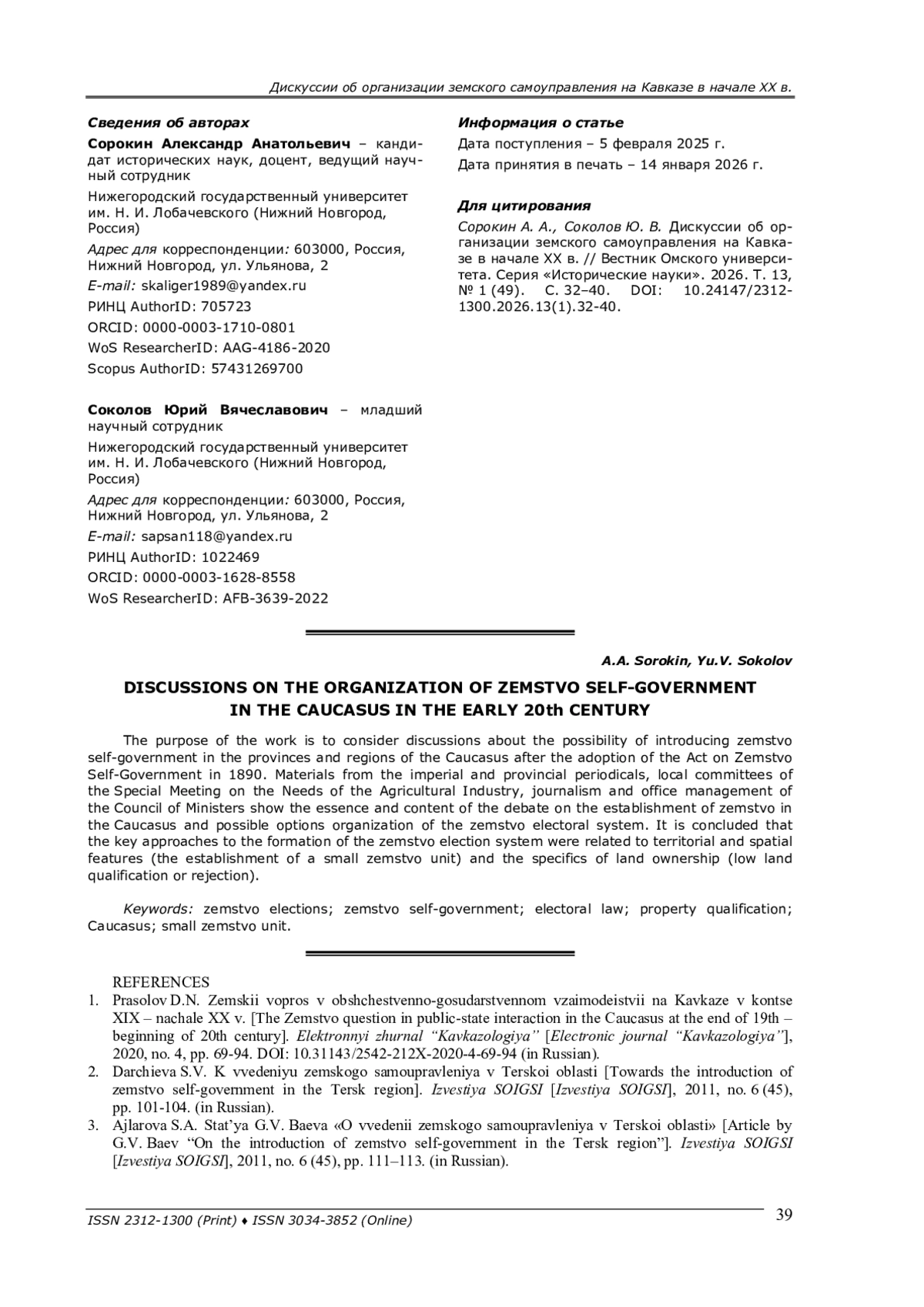 1. Прасолов Д. Н. Земский вопрос в общественно-государственном взаимодействии на Кавказе в конце XIX - начале XX в. // Электронный журнал “Кавказология”. - 2020. - № 4. - С. 69-94. -. DOI: 10.31143/2542-212X-2020-4-69-94