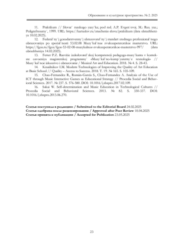 16. Sakai W. Self-determination and Music Education in Technological Cultures // Procedia Social and Behavioral Sciences. 2013. № 82. С. 330-337. DOI: 10.1016/j.sbspro.2013.06.270