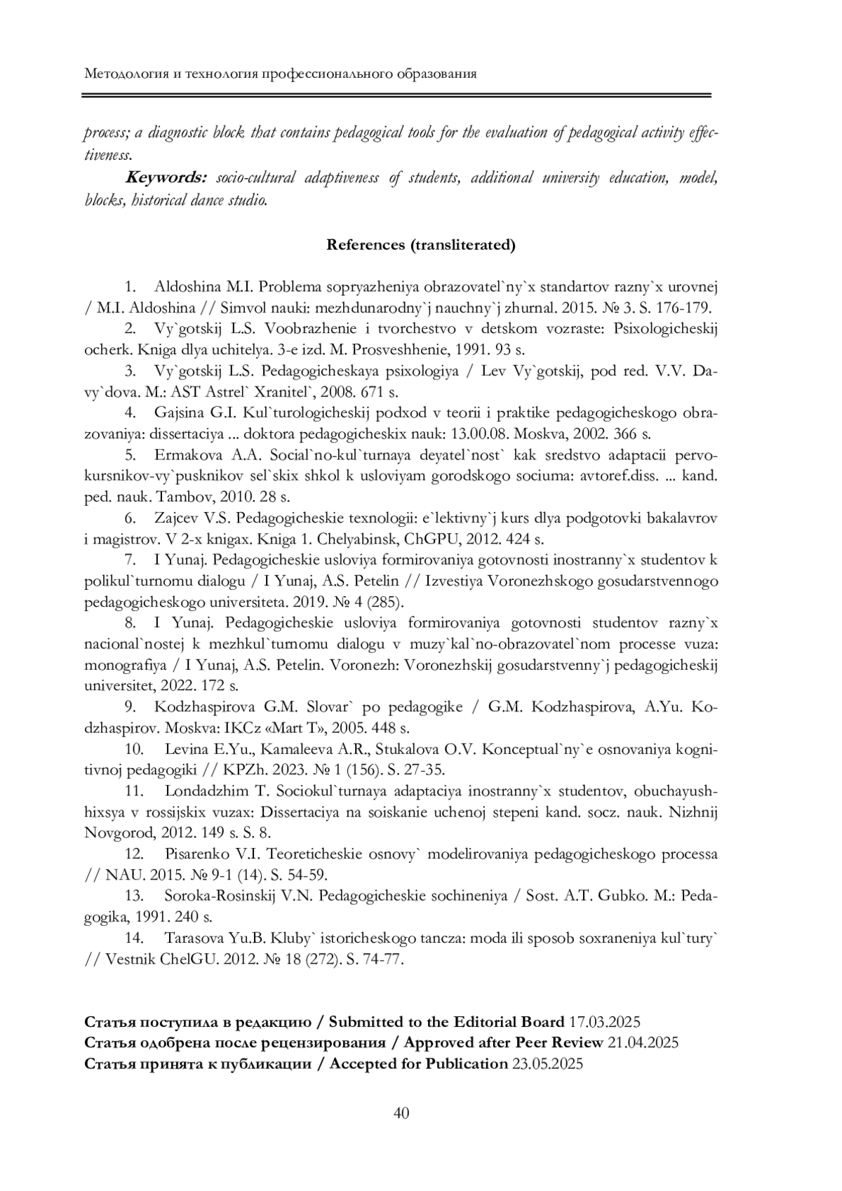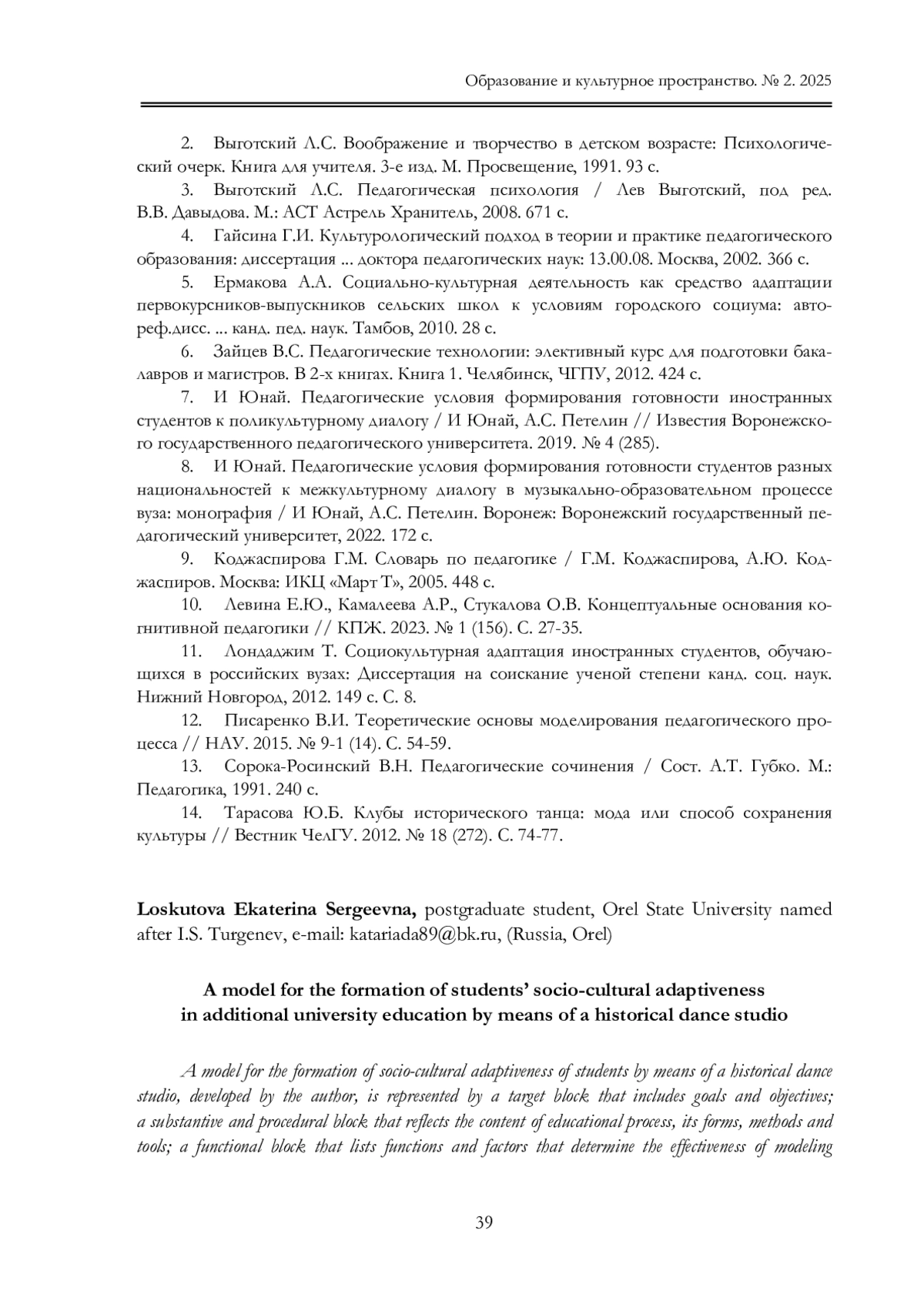 1. Алдошина М.И. Проблема сопряжения образовательных стандартов разных уровней / М.И. Алдошина // Символ науки: международный научный журнал. 2015. № 3. С. 176-179. Образование и культурное пространство. № 2. 2025.
