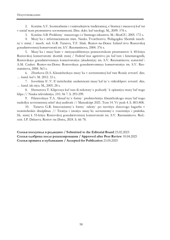 5. Музыка и музыкант в меняющемся постсоветском пространстве: к 40-летию Ростовской консерватории: сборник статей / Федеральное агентство по культуре и кинематографии, Ростовская государственная консерватория (академия) им. С.В. Рахманинова; составитель: А.М. Цукер. Ростов-на-Дону: Ростовская государственная консерватория им. С.В. Рахманинова, 2008. 563 с.