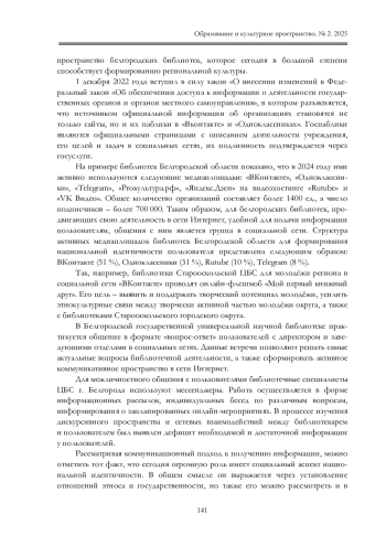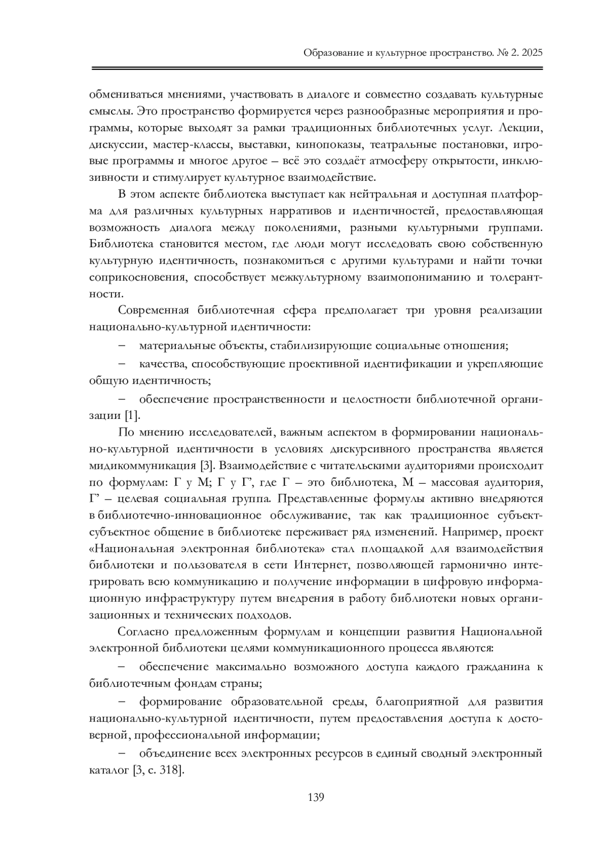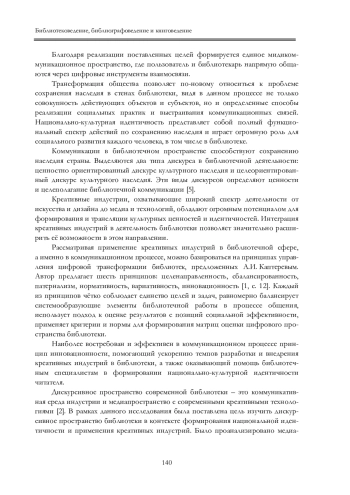 4. Тикунова И.П. Библиотечная цифровизация как мейнстрим научного дискурса / Библиотековедение. 2022. Т. 71. № 2. С. 217-223. EDN: ZTTQXV