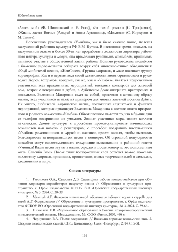 2. Малацай Л.В. Феномен музыкальной образности забытых хоров a cappella для детей А.Г. Флярковского // Образование и культурное пространство. г. Орёл: издательство ФГБОУ ВО “Орловский государственный институт культуры”, № 3. 2024. С. 59-66. EDN: EQODPT