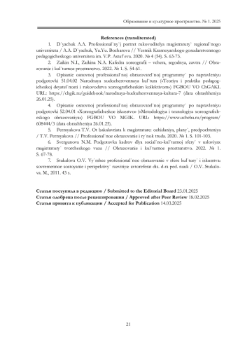 4. Описание основной профессиональной образовательной программы по направлению подготовки 52.04.01 “Хореографическое искусство” (“Методология и технология хореографического образования”) ФГБОУ ВО МГИК. URL: https://www.ucheba.ru/ program/608444/3 (дата обращения 26.01.25).