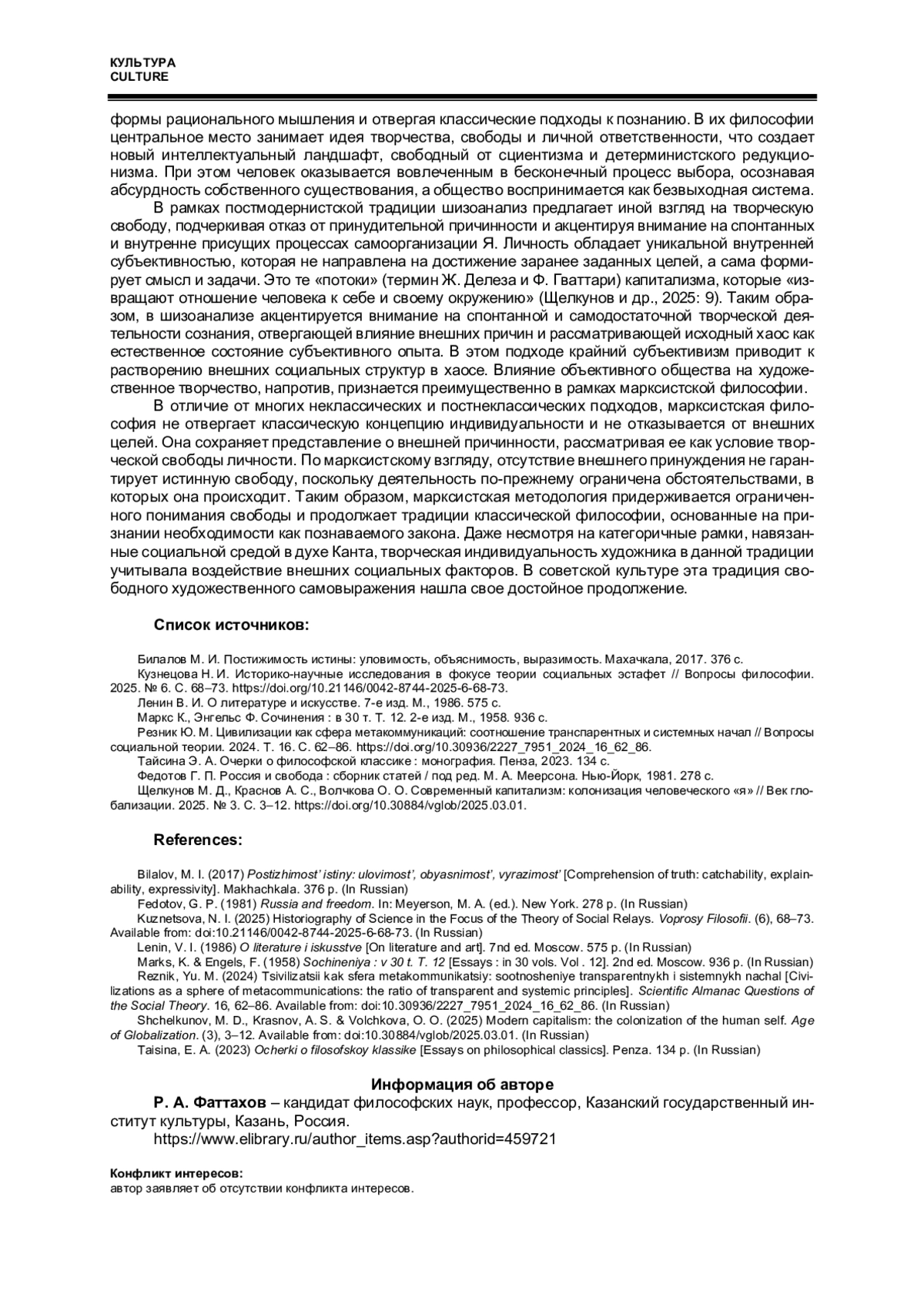 8. Щелкунов М. Д., Краснов А. С., Волчкова О. О. Современный капитализм: колонизация человеческого “я” // Век глобализации. 2025. № 3. С. 3-12. DOI: 10.30884/vglob/2025.03.01 EDN: VLNKEN