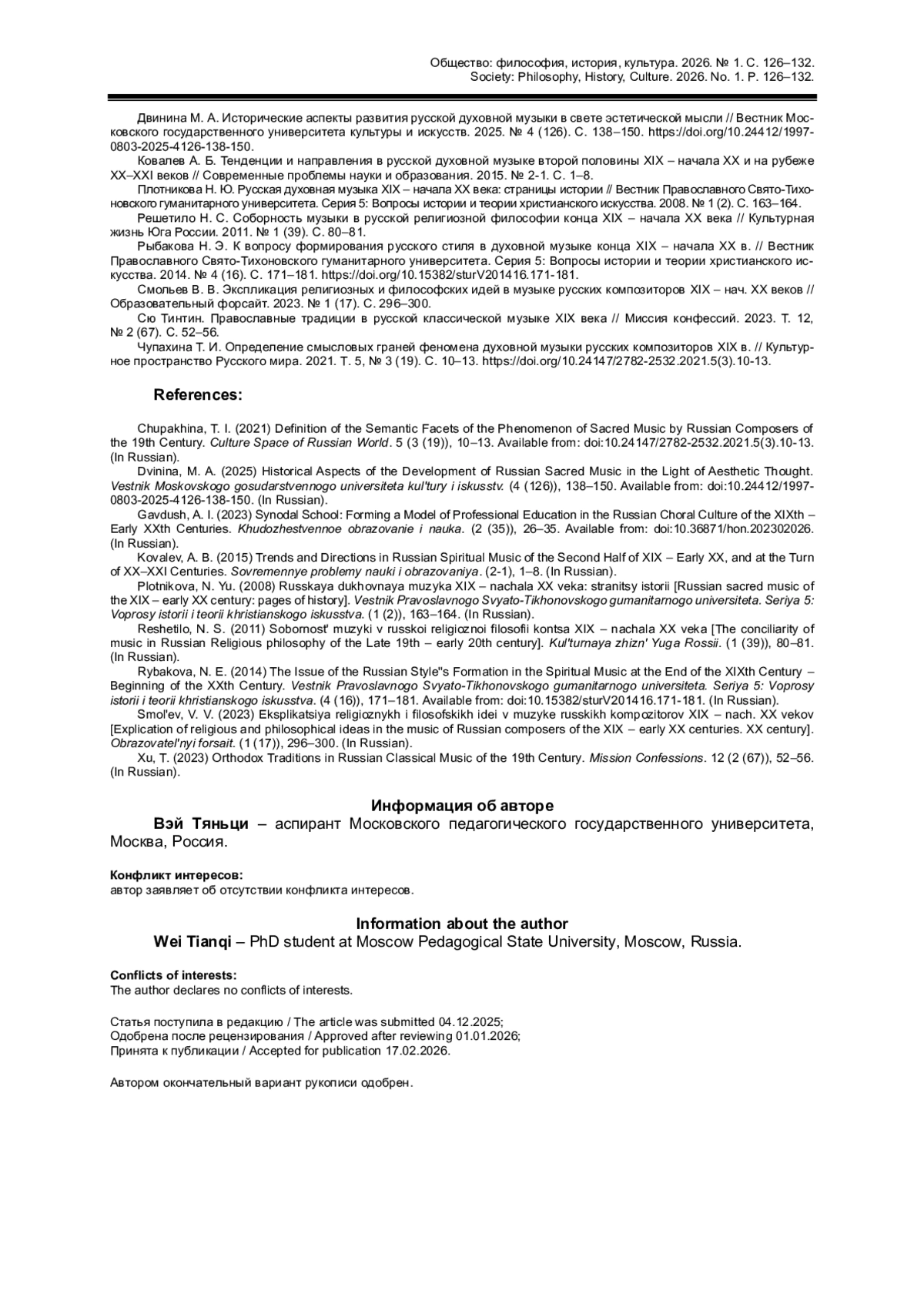 2. Двинина М. А. Исторические аспекты развития русской духовной музыки в свете эстетической мысли // Вестник Московского государственного университета культуры и искусств. 2025. № 4 (126). С. 138-150. DOI: 10.24412/1997-0803-2025-4126-138-150 EDN: WOOGYX