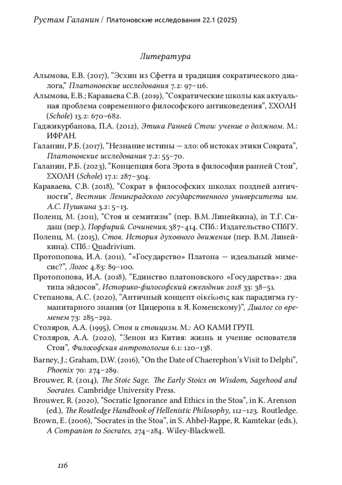 5. Галанин, Р.Б. (2023), “Концепция бога Эрота в философии ранней Стои”, ΣΧΟΛΗ (Schole) 17.1: 287-304. EDN: GEUGRR