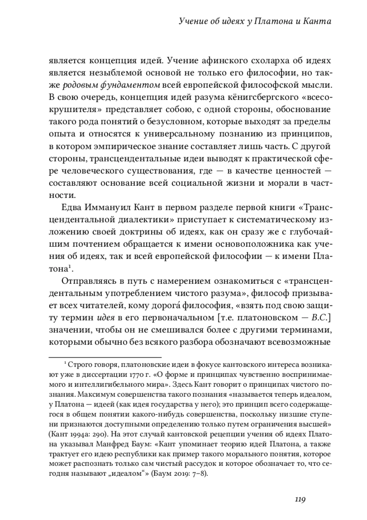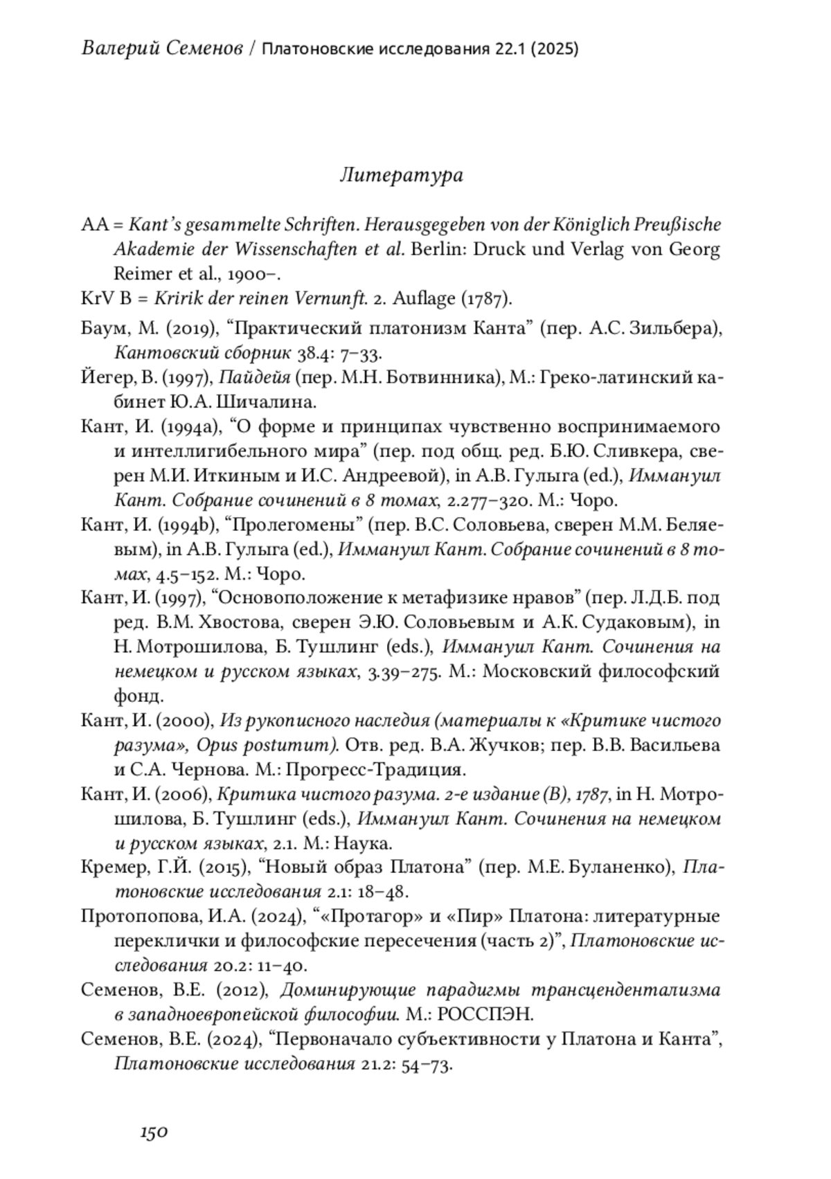 Статья посвящена анализу учений Платона и Канта об идеях. Ставится цель эксплицировать основные функции идей в этих концепциях. В учении Платона присутствуют следующие функции: (i) онтологическая, включающая четыре аспекта: идея есть основа, причина и источник бытия вещи; идея есть парадигма (образец) для вещей; идея есть сущность вещи; идея в высшем и совокупном проявлении - эйдос Блага; (ii) телеологическая: в идее содержатся конечные цели каждой вещи самой по себе и ее копии в чувственно воспринимаемом мире; (iii) эпистемологическая: идея - особого рода понятие, используемое дианойей (рассудком) и ноэсисом (разумом); (iv) аксиологическая и этическая: идеи ноэсиса являются господствующими ценностями и регулятивными идеями всего человеческого существования; (v) эстетическая: некоторые идеи высших качеств (например, красота, прекрасное как таковое) представляют собою эстетический критерий и идеал; (vi) психологическая: идея есть душа; (vii) динамическая: идея-душа является источником и началом движения для всего остального, что движется. Учение афинского схоларха об идеях является незыблемой основой не только его философии, но также родовым фундаментом всей европейской философской мысли. В концепции Канта эксплицированы следующие функции идей разума: (i) регулирование опыта: трансцендентальные идеи регулируют деятельность разума в отношении опыта; (ii) систематизация идей метафизики: трансцендентальные понятия обосновывают идеи метафизики, имеющие непосредственное отношение к «общечеловеческим интересам»; (iii) обоснование практической области: идеи разума делают возможным переход от понятий о природе к практическим понятиям и таким образом создают фундамент для моральных идей. Практические функции идей являются базовыми для обоих философов.