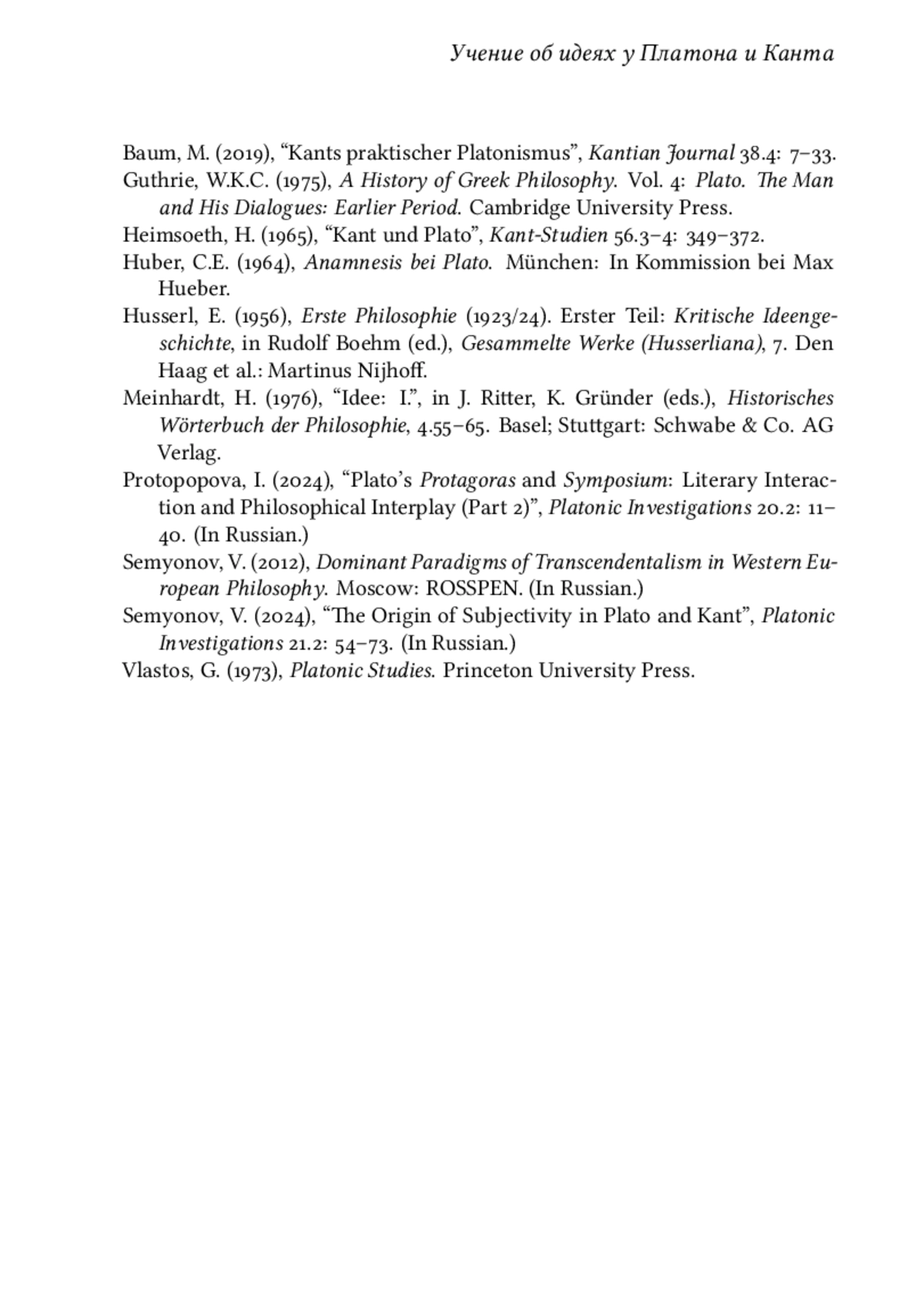 吀栀e article deals with the analysis of Plato’s and Kant’s doctrines of ideas. 吀栀e aim is to explicate the main functions of ideas in these conceptions. In Plato’s doctrine, the following functions are distinguished: (i) ontological, including four aspects: the idea is the basis, cause and source of a thing’s being; the idea is the paradigm (pa琀琀ern) for things; the idea is the essence of a thing; the idea in its highest and most comrehensive manifestation is the eidos of the Good; (ii) teleological: the idea contains the ultimate ends both of each thing in itself and its copy in the sensually perceived world; (iii) epistemological: the idea is a special kind of concept used by dianoia (understanding) and noesis (reason); (iv) axiological and ethical: the ideas of noesis are the dominant values and regulative ideas of all human existence; (v) aesthetic: certain ideas of higher qualities (e. g., beauty, the beautiful as such) constitute the aesthetic criterion and ideal; (vi) psychological: the idea is the soul; (vii) dynamic: the idea-soul is the source and origin of motion for everything else that moves. 吀栀e Athenian scholarch’s doctrine of ideas is the 昀椀rm foundation not only of his own philosophy, but also the generic foundation of all European philosophical thought. 吀栀e following functions of the ideas of reason are explicated in Kant’s conception: (i) regulation of experience: transcendental ideas regulate the activity of reason in relation to experience; (ii) systematization of the ideas of metaphysics: transcendental concepts ground the ideas of metaphysics that are directly relevant to the “universal human interest”; (iii) grounding of the practical domain: the ideas of reason make possible the transition from concepts of nature to practical concepts and thus create the foundation for moral ideas. 吀栀e practical functions of ideas are fundamental to both philosophers.