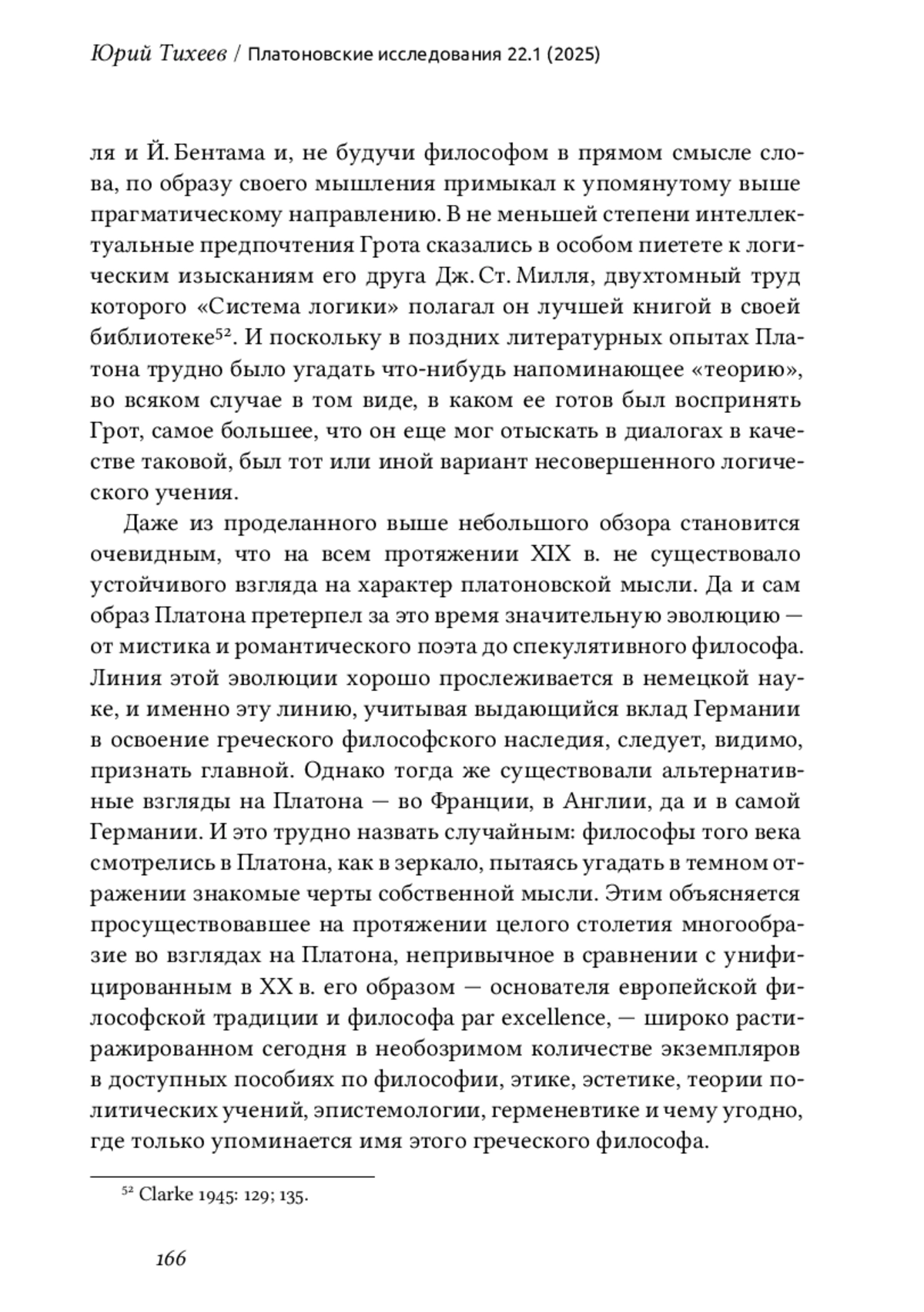 吀栀e development of the main approaches to interpreting Plato’s thought was closely shaped by the speci昀椀c characteristics of the national philosophical schools prevalent in 19th century Europe. A relative consensus on Plato’s philosophy was typical only for the 昀椀rst centuries of the Modern Age, when, under the in昀氀uence of new trends in philosophy, Plato’s legacy lost its relevance. Interest in the 昀椀gure of Plato revived at the end of the 18th century, when German romantics recognized in him an a琀琀ractive image of the bearer of ancient wisdom, a poet and a mystic. 吀栀e in昀氀uence of Romanticism on modern intellectual culture allowed Plato to be brought back into the context of philosophy: 昀椀rst in Germany, and then in the European West, in France and England. Two outstanding German historians of philosophy, G. W. F. Hegel and E. Zeller, established the dominant interpretation, presenting Plato as a speculative philosopher and the Platonic idea as a distant precursor of the speculative concept. In France and England, interest in Plato was renewed under the German in昀氀uence. However, these countries had their own views on the essence of Plato’s thought. French spiritualistic philosophy understood the idea as a higher unity that does not depend on any logical procedure, but is accessible to intuition. In English pragmatically oriented thought, a skeptical view on the possibility of discovering a uni昀椀ed philosophical system in Plato’s dialogues became predominant, and Plato’s dialectic was interpreted as a kind of imperfect logic.