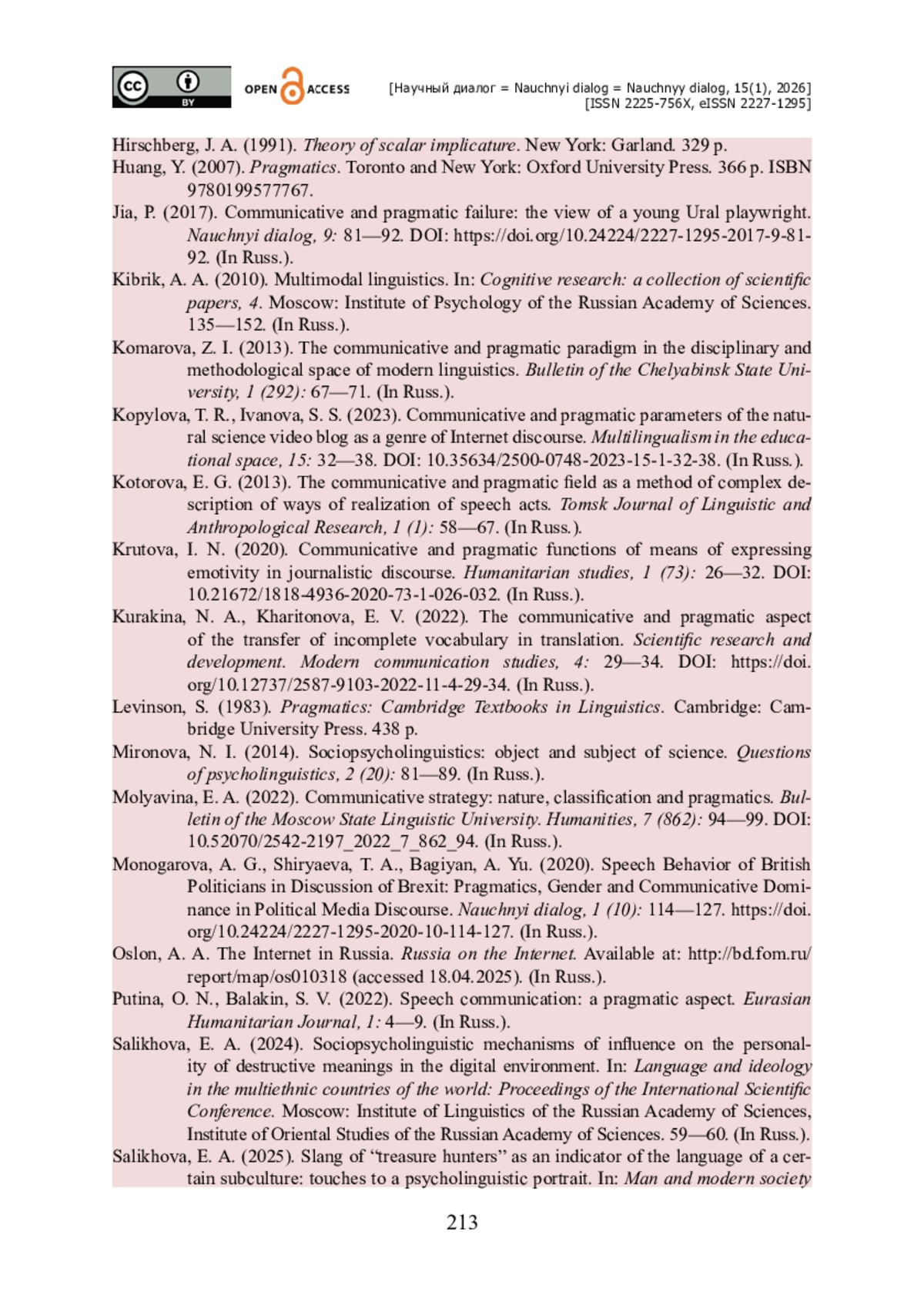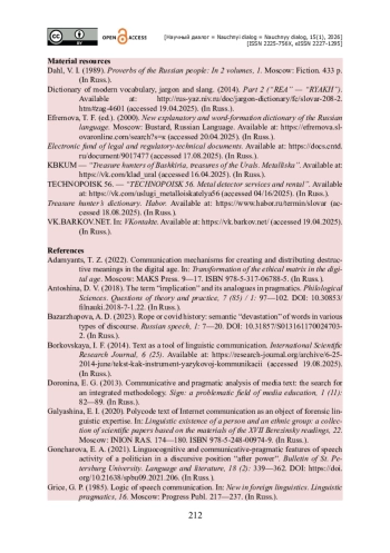 25. Салихова Э. А. Социопсихолингвистические механизмы воздействия на личность деструктивных смыслов в цифровой среде / Э. А. Салихова // Язык и идеология в полиэтничных странах мира : Материалы Международной научной конференции. - Москва : Институт языкознания РАН, Институт востоковедения РАН, 2024. - С. 59-60.