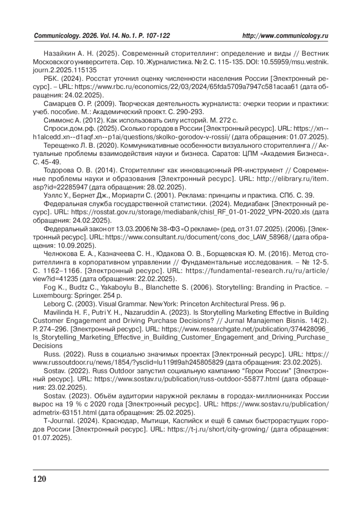 8. Назайкин А. Н. (2025). Современный сторителлинг: определение и виды // Вестник Московского университета. Сер. 10. Журналистика. № 2. С. 115-135. https://doi.org/10.55959/msu.vestnik. journ.2.2025.115135