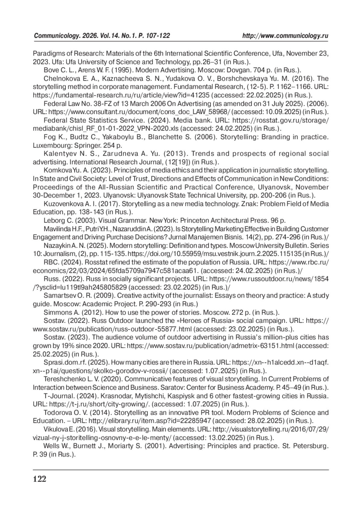 15. Уэллс У., Бернет Дж., Мориарти С. (2001). Реклама: принципы и практика. СПб. С. 39. Федеральная служба государственной статистики. (2024). Медиабанк [Электронный ресурс]. URL: https://rosstat.gov.ru/storage/mediabank/chisl_RF_01-01-2022_VPN-2020.xls (дата обращения: 24.02.2025).