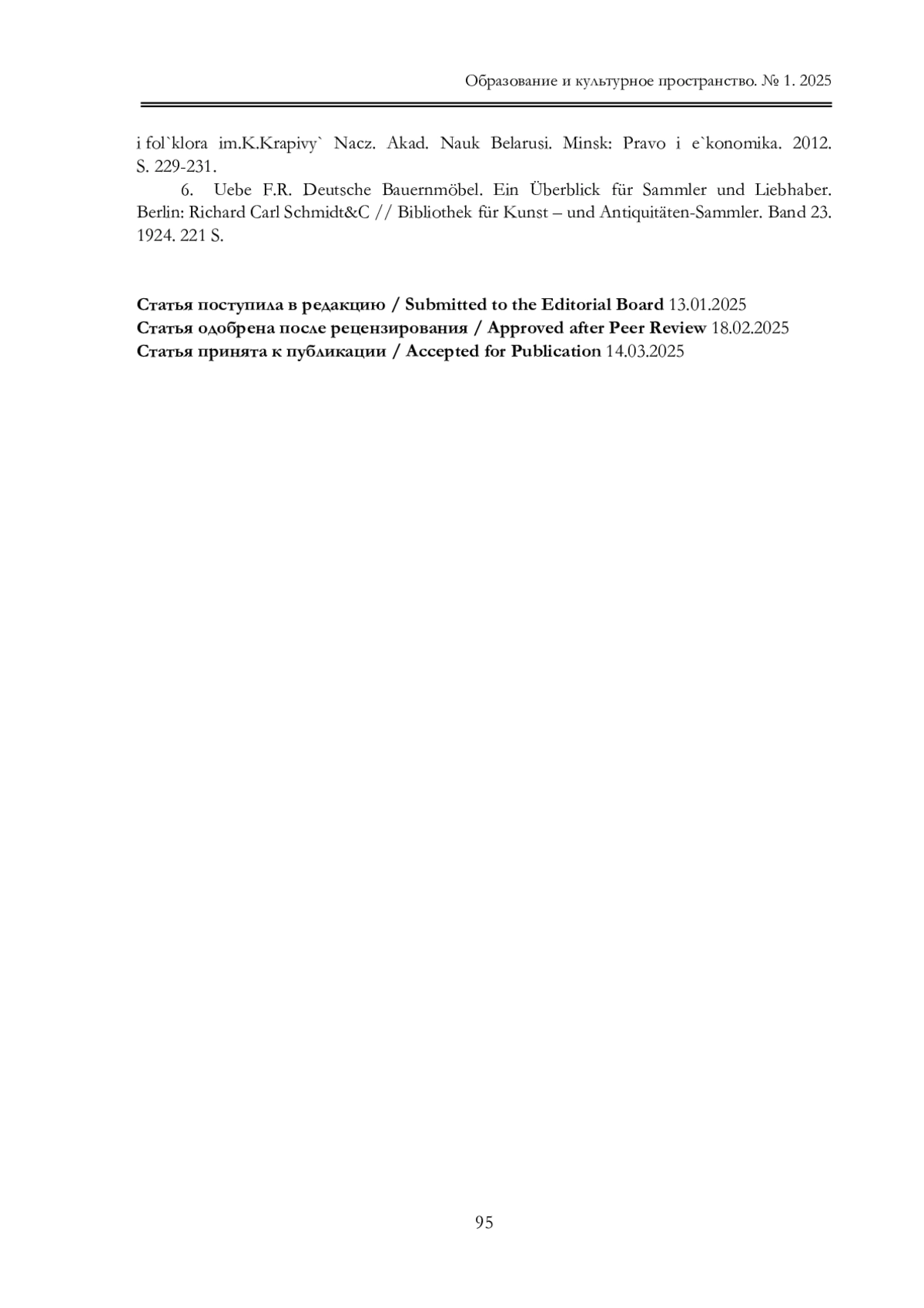 2. Пудов Г.А. Русско-скандинавские художественные связи в сундучном производстве // Вестник Томского государственного университета. Культурология и искусствоведение. 2023. № 51. С. 270-282. EDN: ZOGTSC