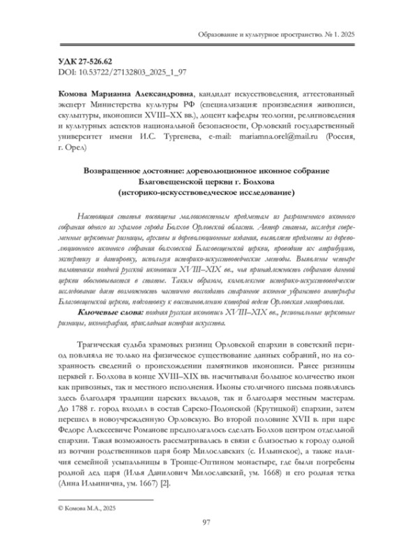 3. Комова М.А. Иконное наследие Орловского края XVIII-XIX веков. Москва: Индрик, 2012. 512 с. EDN: QWCNGF