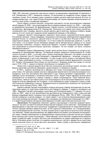 Автор приходит к выводу, что первые инициативы по созданию подобных частей относятся еще к царствованию императора Александра I. Отмечается, что творцом новых воинских частей являлся не только император. В их формировании из представителей своего региона могли быть заинтересованы местные национальные элиты. Вновь созданные финские национальные части внесли существенный вклад в развитие стрелкового дела в Российской армии. Гвардейский Кавказский эскадрон сыграл важную роль в становлении новой военной и административной элиты для Закавказья как региона Российской империи.
