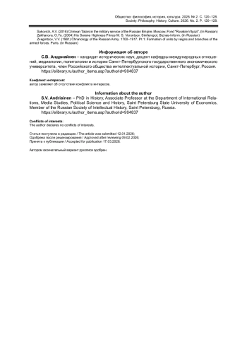 13. Сакович А.В. Крымские татары на военной службе Российской империи. М., 2016. 315 с.