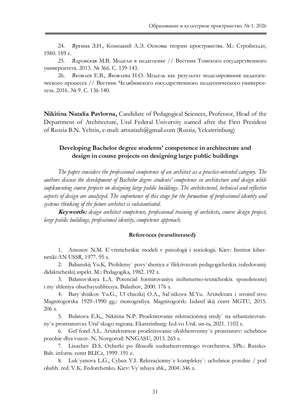 25. Ядровская М.В. Модели в педагогике // Вестник Томского государственного университета. 2013. № 366. С. 139-143.