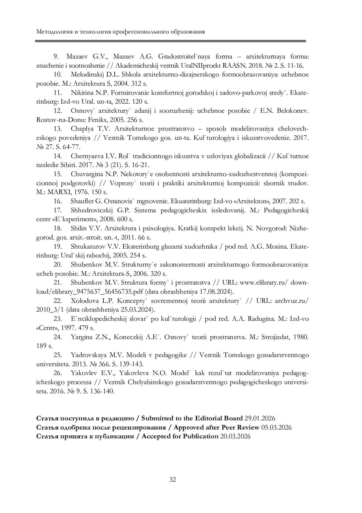 9. Мазаев Г.В., Мазаев А.Г. Градостроительная форма - архитектурная форма: Гельфонд А.Л. Архитектурное проектирование общественных пространств: значение и соотношение // Академический вестник УралНИИпроект РААСН. 2018. № 2. С. 11-16.
