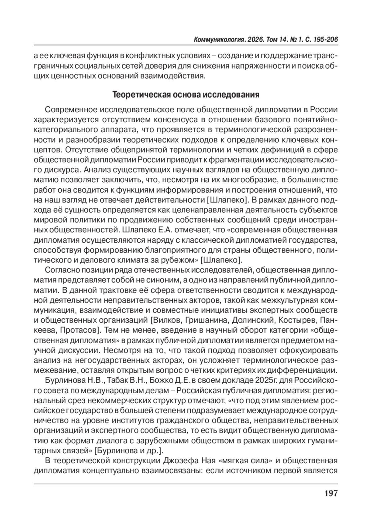1. Бурлинова Н.В., Табак В.Н., Божко Д.Е. (2025). Российская публичная дипломатия: региональный срез некоммерческих структур // Доклад для Российского совета по международным делам.