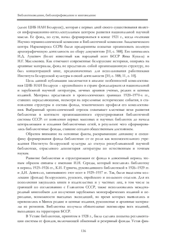 Цель данной публикации заключается в анализе особенностей комплектования ЦНБ НАН Беларуси – крупнейшего в стране фондодержателя национальной и зарубежной научной литературы, личных архивов ученых, редких и ценных изданий. Материал представлен в хронологических границах 1920–1970-х гг., ставших определяющими, несмотря на переломные исторические события, в становлении структуры и состава фонда, тематического профиля его комплектования. Выбранный хронологический отрезок охватывает ключевые вехи развития библиотеки в контексте организационного структурирования библиотечной системы СССР: от появления первых массовых и научных библиотек до начала централизации и создания библиотечных сетей, в результате чего сформировались библиотечные фонды, ставшие сегодня общественным достоянием.