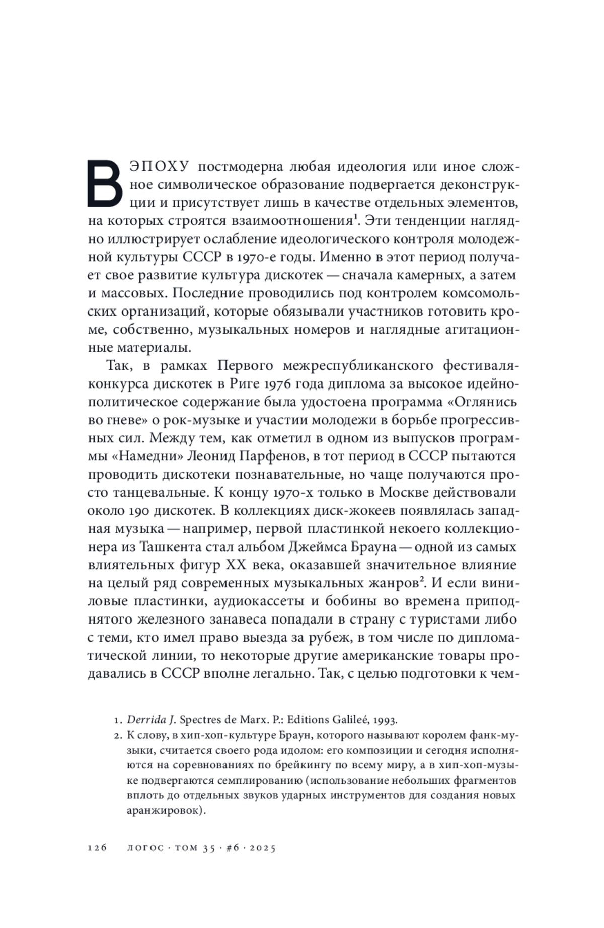 В эпоху постмодерна любая идеология или иное сложное символическое образование подвергается деконструкции и присутствует лишь в качестве отдельных элементов, на которых строятся взаимоотношения1. Эти тенденции наглядно иллюстрирует ослабление идеологического контроля молодежной культуры СССР в 1970-е годы. Именно в этот период получает свое развитие культура дискотек — сначала камерных, а затем и массовых. Последние проводились под контролем комсомольских организаций, которые обязывали участников готовить кроме, собственно, музыкальных номеров и наглядные агитационные материалы