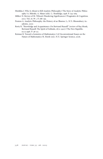 24. Hintikka J. Who Is About to Kill Analytic Philosophy // The Story of Analytic Philosophy / A. Biletzki, A. Matar (eds). L.: Routledge, 1998. P. 253-269.