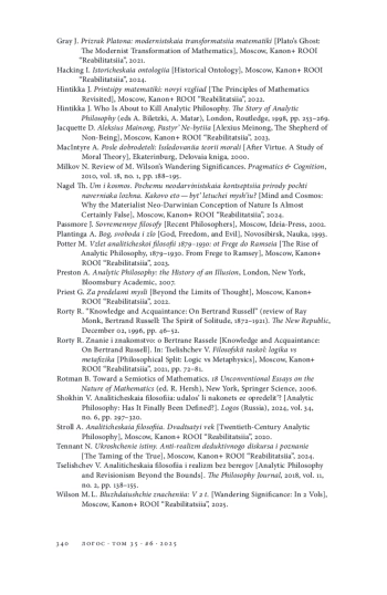 26. Preston A. Analytic Philosophy: the History of an Illusion. L.; N.Y.: Bloomsbury Academic, 2007.