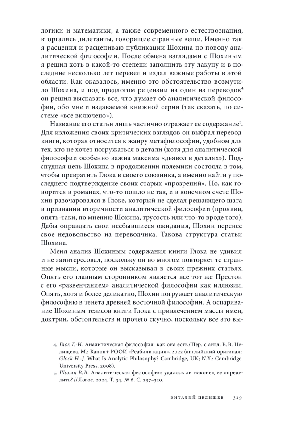 1. Глок Г.-И. Аналитическая философия: как она есть / Пер. с англ. В. В. Целищева. М.: Канон+ РООИ “Реабилитация”, 2022.