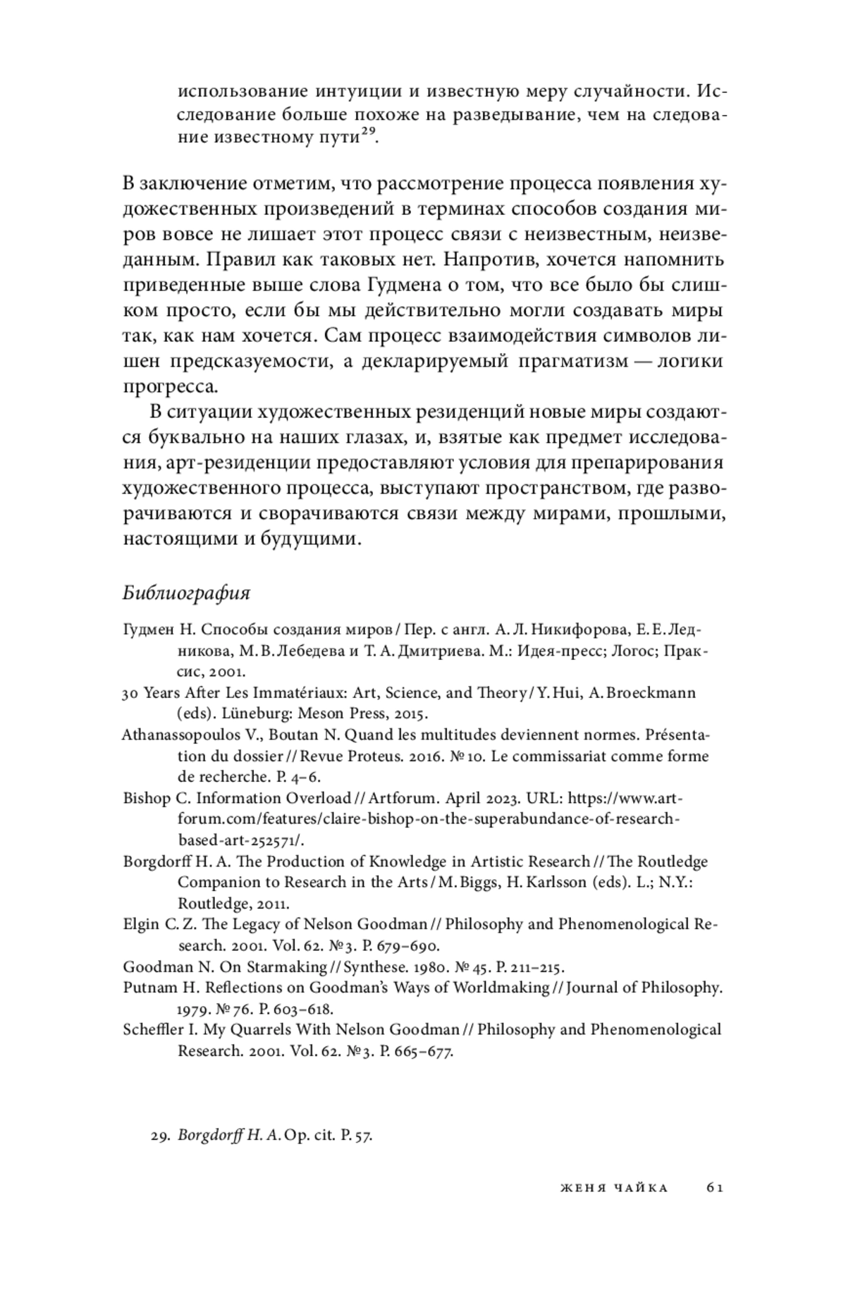 5. Borgdorff H. A. The Production of Knowledge in Artistic Research // The Routledge Companion to Research in the Arts / M. Biggs, H. Karlsson (eds). L.; N.Y.: Routledge, 2011.
