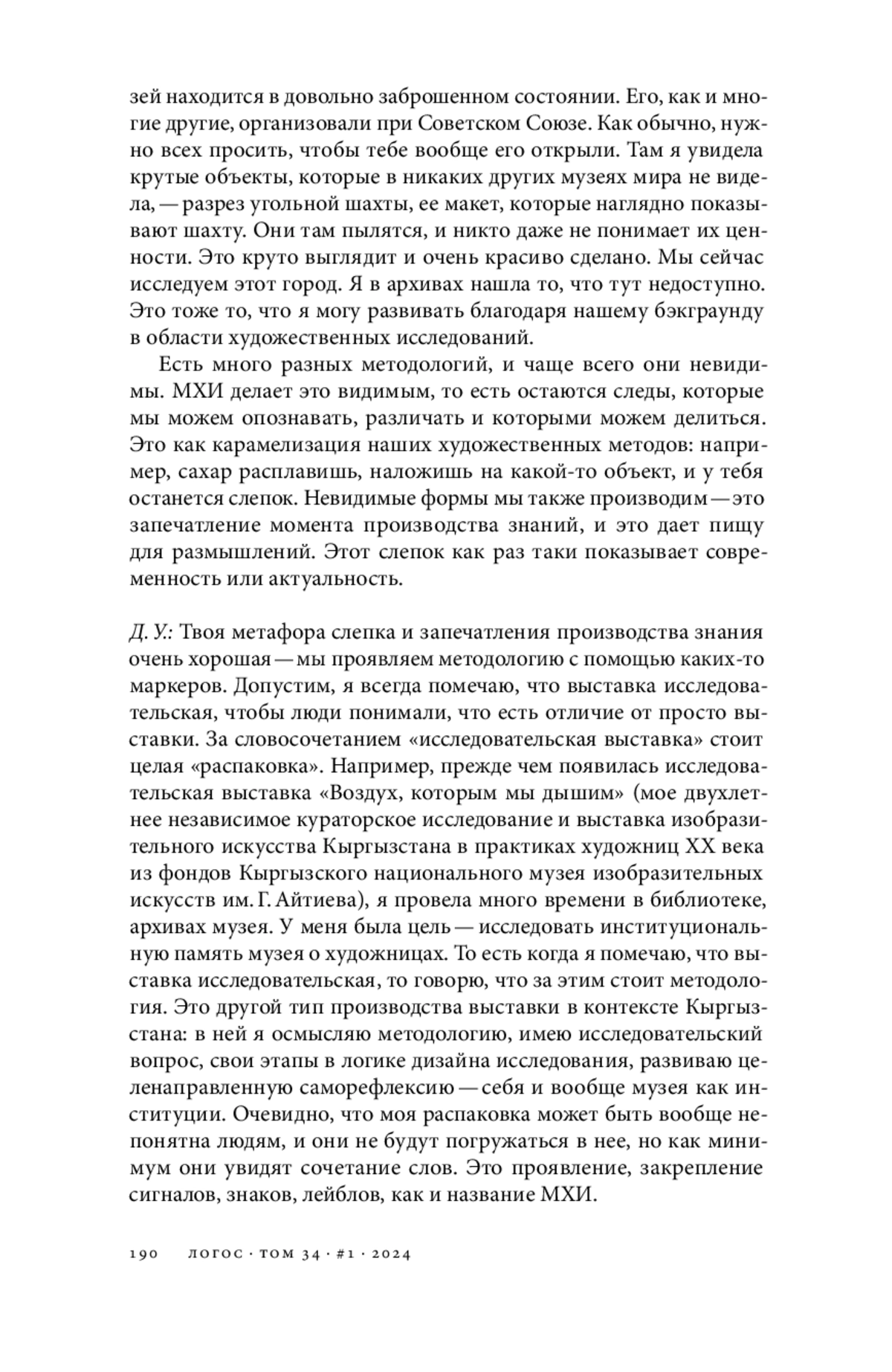 Д. У.: В 2021 году мы начали с тобой формировать Школу методологии художественных исследований (МХИ). На тот момент, как я это чувствую, у нас с тобой это был какой-то внутренний синхронизированный импульс. Как и во многих других художественных высказываниях в поле современного искусства, мы двигались ситуативно, интуитивно и не совсем понимали, что, зачем и как делаем. По крайней мере, я не совсем понимала. Один из ключевых вопросов, который каждый раз возвращается ко мне в связи с МХИ и нашей культурной практикой,— зачем нам вообще нужна методология художественных исследований? Как ты на это смотришь?