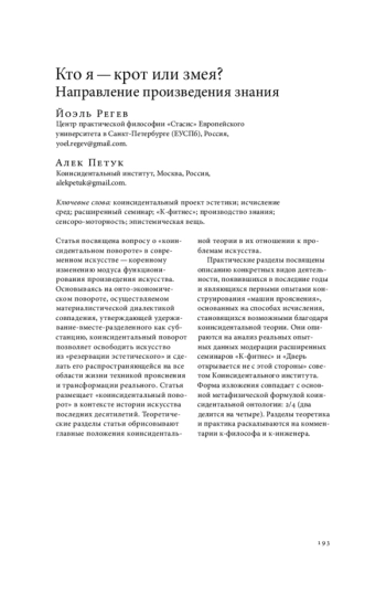 Когнитивная революция требует новых художественных подходов к исследованию идентичности. В статье обсуждаются основания для понимания художественных проектов-исследований, закономерности их появления и развития. Выделяется кибернетический фактор, ставящий вопросы знания и опыта за пределами познавательных возможностей субъекта и в то же время инструментализирующий его незнание. Каким образом современные художники обращаются к технологиям искусственного интеллекта? Как они концептуализируют кибернетическую реальность? Как искусство обнаруживает себя в ней? Что является результатом этих исследований? Как они согласуются с современным теоретическим дискурсом? Среди реакций на появление искусственного интеллекта отмечается эйфория, возникающая в связи с успешной имитацией им произведений искусства. От искусственного интеллекта ожидается, что, получив всю доступную информацию, он поделится с человеком сверхчувственными образами и поможет превратить окружающую среду в особое киберпространство, а индивидов — в алгоритмы, объединяющие в себе техническое и природное. Особо отмечается такой вид художественного исследования, который устанавливает связь с искусственным интеллектом в формах дорациональной коммуникации. В самой «искусственности» искусственного интеллекта искусство открывает для себя надежду на то, что с концом идентичности и исчезновением человека интеллект, наконец, отрефлексирует себя не в формах конца корреляции, а в формах искусства и пойесиса