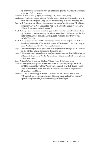 17. Therrien T. The Epistemology of Search. An interview with David Joselit // A/R/P/A Journal. 2014. № 2. URL: https://arpajournal.net/wp-content/uploads/2014/11/Joselit_The-Epistemology-of-Search.pdf.