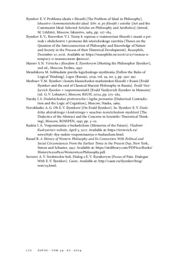 9. Ильенков Э. В., Коровиков В. И. Тезисы к вопросу о взаимосвязи философии и знаний о природе и обществе в процессе их исторического развития // Русофил. 27.12.2016. URL: https://russophile.ru/2016/12/27/тезисы-к-вопросу-о-взаимосвязи-филосо/.